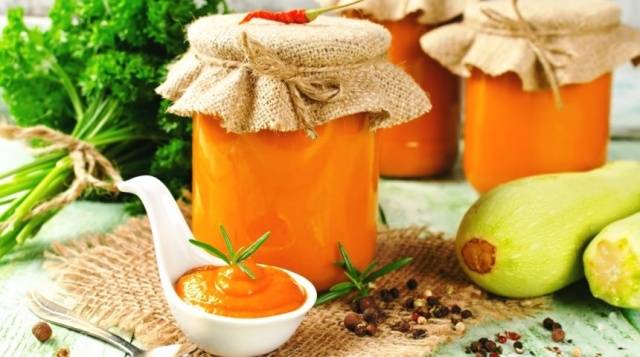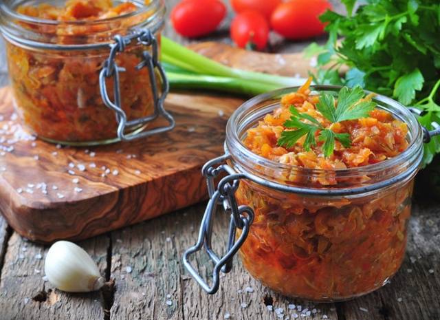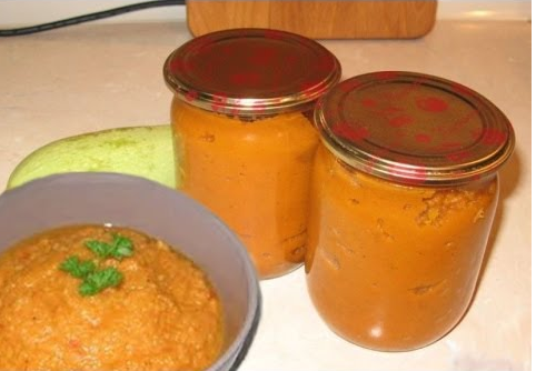 - Os produtos restantes são adicionados à massa homogênea resultante e fervidos por mais 15-20 minutos. No final do cozimento, o caviar de abóbora é colocado em potes limpos e preparados e enrolado.
