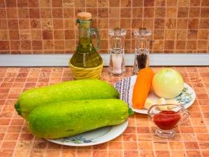 - Você precisa preparar vegetais básicos para fritar. Retire a câmara de sementes da abobrinha, corte a casca da superfície do vegetal. Corte as abobrinhas em rodelas ou rodelas. Descasque e lave as cenouras, pique. A cebola também deve ser descascada e cortada em meias argolas ou cubinhos.