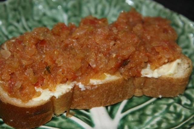 Acompanha bem batatas, qualquer tipo de carne e outros vegetais. É servido como um lanche frio e quente. Mas em muitas casas, eles fazem alegria de abobrinha apenas para espalhar no pão.