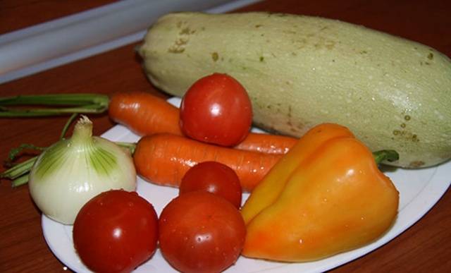 Para fazer isso, precisamos dos seguintes ingredientes: abobrinha 2 kg, cebola 1 kg, cenoura 1,5 kg, tomate 1,5 kg, pimentão 0,5 kg, pimenta verde 2 pcs, alho, cúrcuma, páprica, azeite, pimenta moída, sal , açúcar.