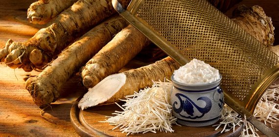 - Lave e descasque o alho, a cenoura e a raiz-forte.