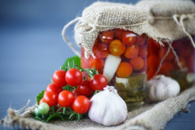 Para preparar a receita, é melhor levar tomate cereja e marinar em potes de litro. Seu sabor será incomum, não tão exótico, um tanto não convencional. Tudo será comido - tomates, maçãs, cebolas, pimentões e até alho, que geralmente é usado exclusivamente para dar sabor.