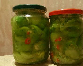 Os frascos retirados são imediatamente selados hermeticamente, colocados na tampa e embrulhados num casaco de pele. Depois de um dia, a salada de Cobra resfriada de tomates verdes pode ser removida para um local frio. Bom apetite!