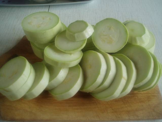 - O óleo é colocado em um recipiente fundo e, em seguida, as abobrinhas preparadas são mergulhadas nele. Depois de amolecerem, os vegetais são colocados em uma peneira por meia hora.