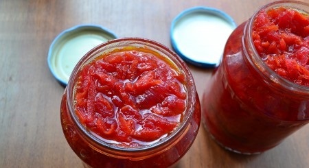 - No final, adicione o vinagre, ferva a massa até ferver e coloque-a imediatamente em potes secos estéreis, selando-os instantaneamente para o inverno.