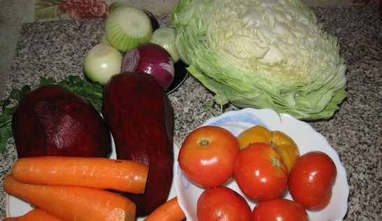 Os requisitos para a escolha de outros vegetais para a beterraba são padrão: devem ser frescos, sem vestígios de podridão, o tamanho não importa muito, pois tudo será picado de qualquer maneira.