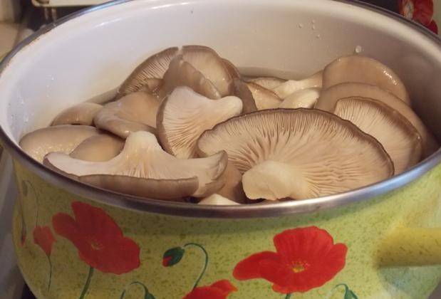 - Depois disso, a água é drenada e os cogumelos ostra são resfriados à temperatura ambiente. Em seguida, são colocados em potes preparados, acrescentando um pouco de alho picado.