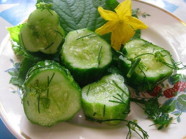 Os pepinos preparados de acordo com esta receita podem ser servidos no dia seguinte.