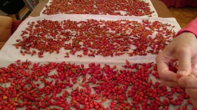 É necessário secar a rosa mosqueta até que a umidade se evapore completamente e o aparecimento de rugas pronunciadas.