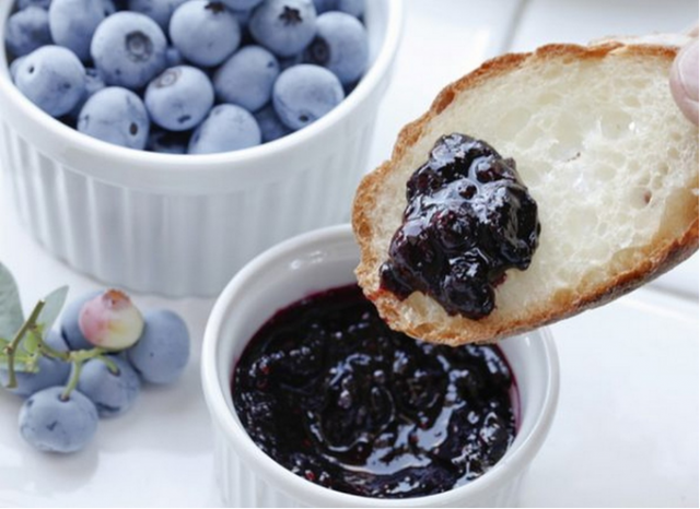 Esta receita contém mais vitaminas na geléia de mirtilo. Já o tratamento térmico da geléia leva apenas 5 minutos.