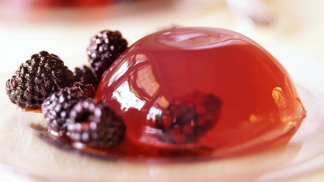 Para a geléia, você precisa espremer o suco de amoras maduras. Isso pode ser feito cortando os frutos silvestres de qualquer maneira e espremendo-os através de um pano de algodão. Para 0,5 litros de suco, são necessários 0,4 kg de açúcar e 7 gramas de gelatina, que devem ser previamente mergulhados em água fervida fria.