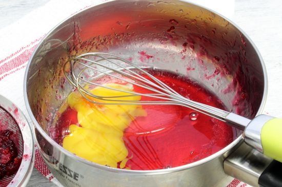 O suco é espremido dos frutos fervidos, moendo-os em uma peneira de tamanho médio. O açúcar é despejado na mistura. Dissolva a manteiga em fogo baixo, acrescente o suco de limão, a vanilina e o xarope de groselha resfriado. A composição é fervida e depois resfriada. Os ovos são batidos separadamente e introduzidos na amostra da baga com agitação constante. Coloque a massa resultante no fogo, cozinhe até engrossar, evitando ferver. O curdo resultante é despejado em pequenos recipientes, resfriado e colocado na geladeira.