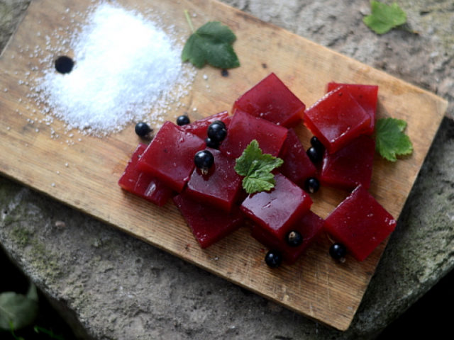 As bagas castanhas contêm mais pectina, por isso a marmelada endurece muito mais rapidamente. Se as groselhas estiverem totalmente pretas e maduras, deve-se adicionar ágar-ágar ou gelatina à composição, o que ajudará a delicadeza a dar a forma desejada.