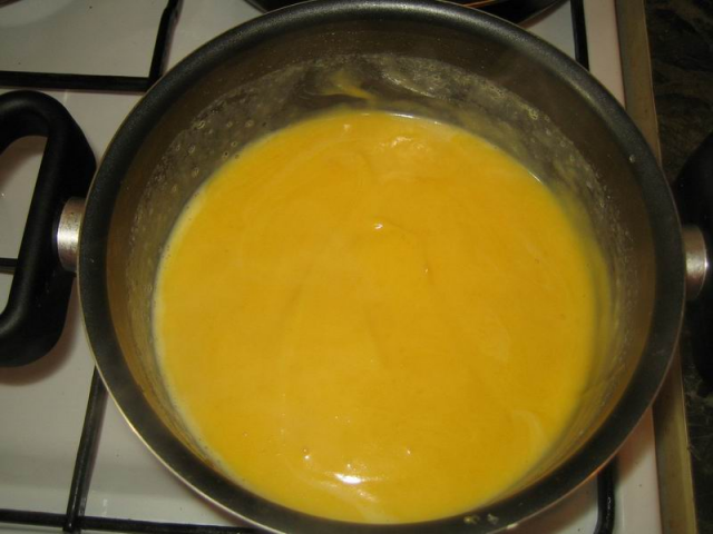 - Antes de colocar a panela no fogo, triture bem o melão no liquidificador de imersão até ficar homogêneo, para que não fiquem grumos. Este purê de batata deve ser fervido em fogo baixo até ferver, depois deixe ferver por 5 minutos, mexendo ocasionalmente.