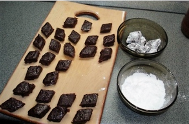 - Corte o produto acabado em quadrados e coloque em uma jarra de vidro.