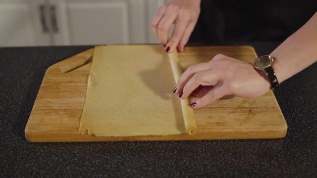 O marshmallow acabado é removido da secadora. Remova-o imediatamente da bandeja e enrole-o em um tubo enquanto ainda está quente.