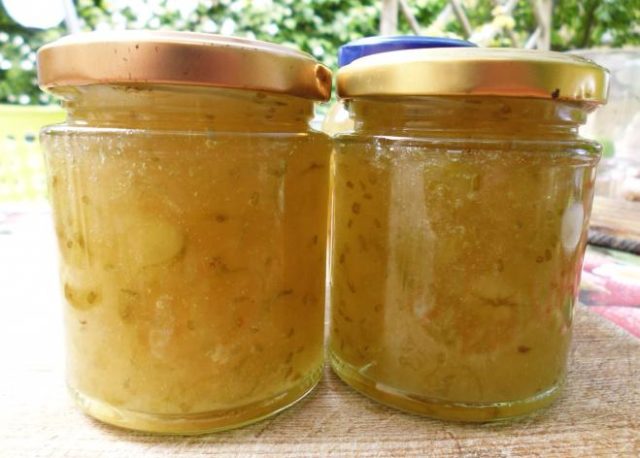 - Retire a geléia acabada do fogão, acrescente as folhas de hortelã separadas e lavadas. Agitado e despejado em latas, esterilizadas com antecedência.