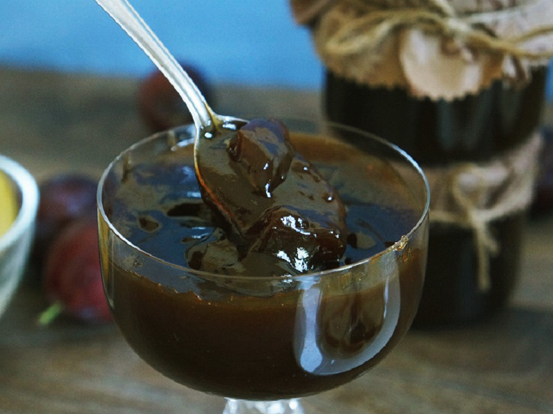 A sobremesa é guardada por muito tempo sem perder seu sabor extraordinário. Segundo esta receita, uma iguaria de ameixa acaba sendo moderadamente doce, com agradáveis notas azedas e um fresco aroma de verão.