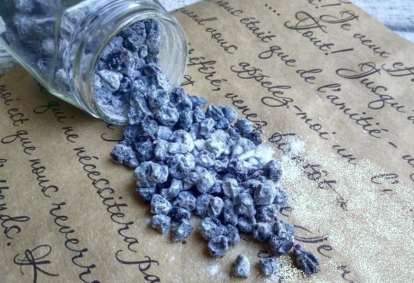A peça preparada parece uma fruta cristalizada seca, cada baga preta será separada das outras, portanto, frutas maiores são selecionadas para iguarias. Amassado, amassado - eles não pegam: darão um excesso de umidade, que não é necessário, e a aparência de groselha preta não será atraente.