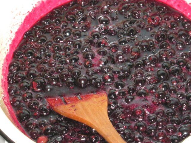 - Retire delicadamente com uma escumadeira e coloque as bagas de groselha preta em uma camada.