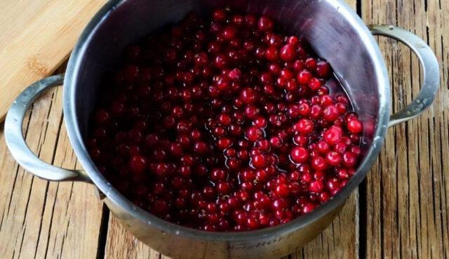 - Deixe por duas horas para escorrer completamente a calda e esfriar as bagas de groselha.