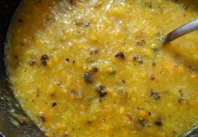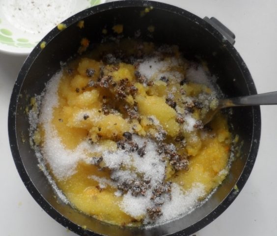- O caldo é moído em uma peneira e o purê resultante é adicionado à mistura de maçã e ameixa.