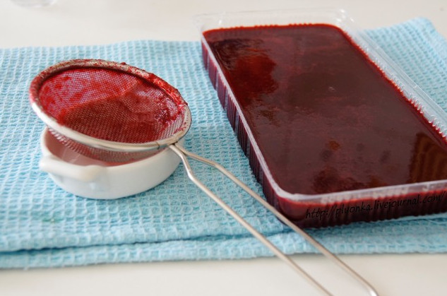 - As cerejas são sem caroço e picadas no liquidificador. Depois disso, é adicionalmente esfregado por uma peneira.
