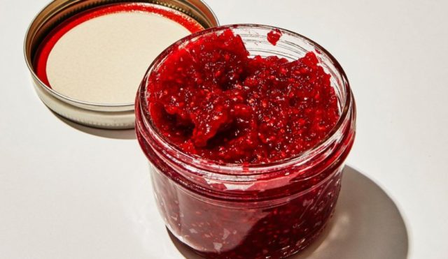 Uma geleia simples de framboesa para o inverno se assemelha à confitura francesa em consistência e sabor. Os bagos são fáceis de aquecer sem perder o aroma delicado e o brilho da cor.