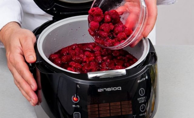 Geléia de framboesa em panela elétrica