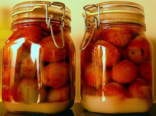 As frutas são colocadas em uma jarra, deixada por 24 horas para que o suco saia. Em seguida, despeje o líquido até que esteja completamente coberto. Todo mundo é colocado em um lugar frio por duas semanas, um mês.