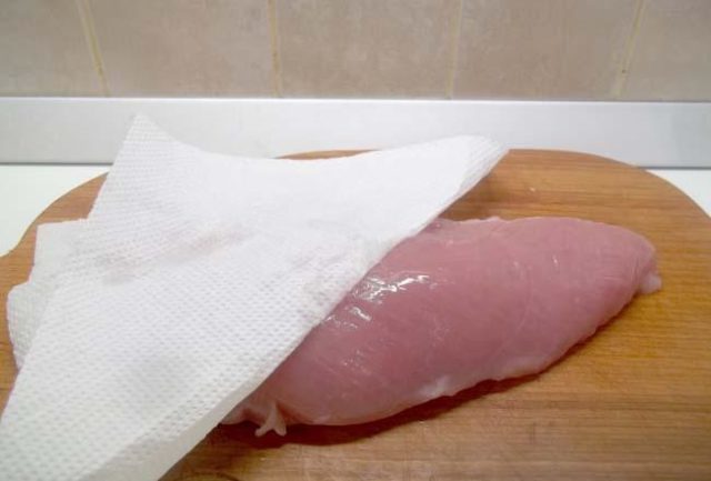 - Lave e seque a carne de aves com uma toalha de papel.