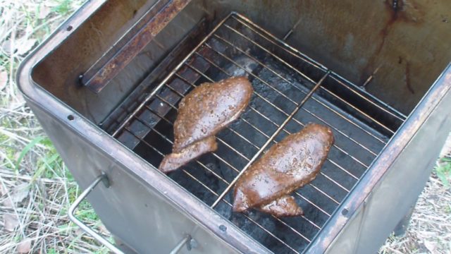 - Coloque sobre uma gradinha no fumeiro e cozinhe por 1 hora.