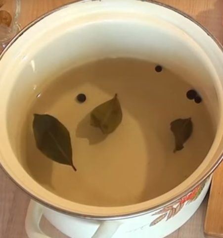 - Faça uma salmoura com sal, louro, pimenta e seus temperos favoritos. Ferva por 5 minutos e deixe esfriar.