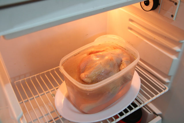 - Coloque a carcaça do peru na salmoura e leve à geladeira por dois dias.