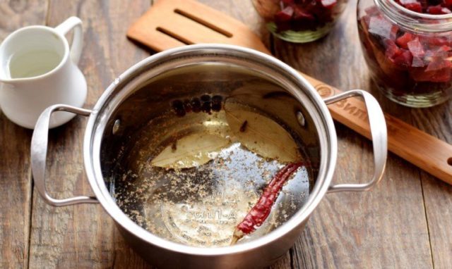 - Prepare uma marinada de 1 litro de caldo, cebola, pimenta, raiz de salsa, folha de louro, cravo, endro, canela e óleo de girassol (2 xícaras). Despeje a carne com caldo quente, adicione 3 colheres de sopa. eu. vinagre e deixe por 5 horas. Então, ao ar livre, a peça deve secar por cerca de quatro horas.