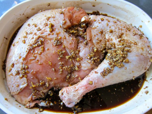- Rale com os temperos, regue com o molho de soja e deixe marinar na geladeira por dois dias.
