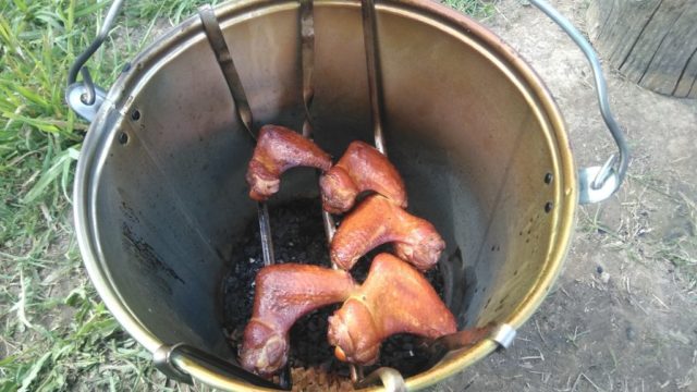 É melhor fumar asinhas de frango defumadas a quente sozinho. A tecnologia é mais simples, até mesmo os iniciantes podem lidar com ela. Além disso, os alimentos podem ser cozinhados com muito mais rapidez.