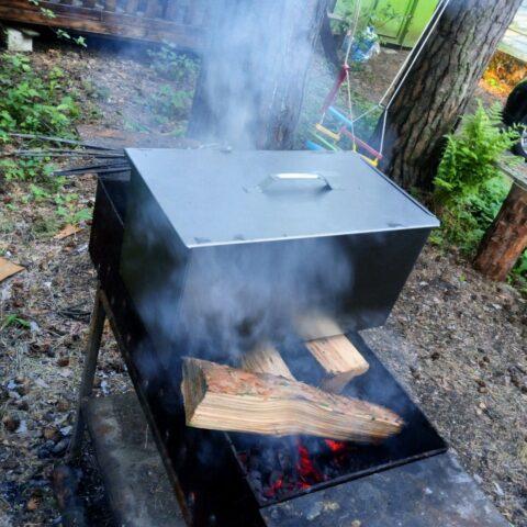 Além de árvores frutíferas, lascas de faia ou carvalho podem ser usadas para defumar.