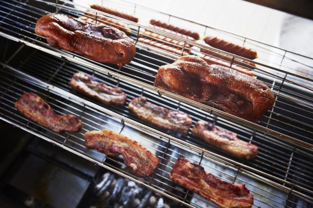 Para o armazenamento de longo prazo da carne, ela é defumada quente e fria. Quando fumado a quente, o produto é exposto à temperatura e, quando está frio, é preservado por fumaça quente.