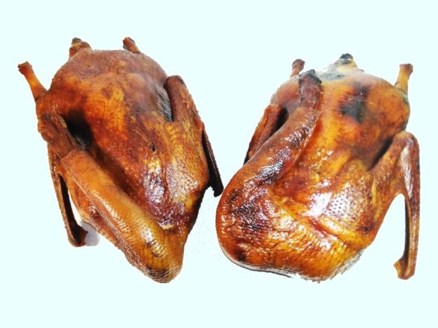 Antes de ser defumada, a carne de frango é freqüentemente fervida para amolecê-la. Após salga e decapagem, a carcaça é deixada na geladeira por 10-12 horas.