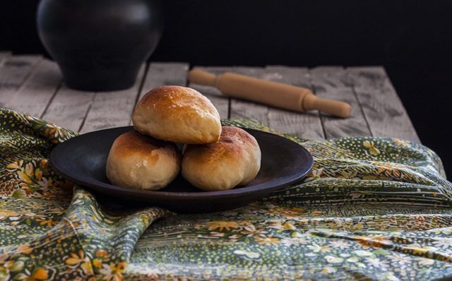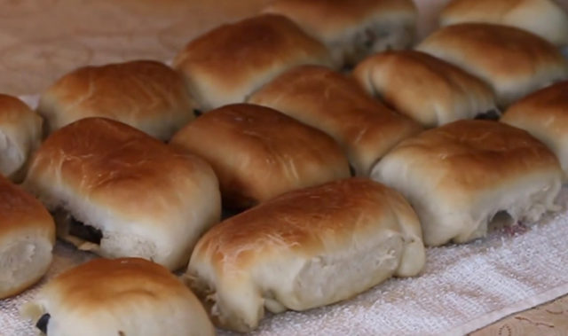 - Unte as tortas com um ovo batido usando um pincel de silicone. Envie para um forno quente. Cozinhe por 40 minutos. Temperatura - 180 ° С.