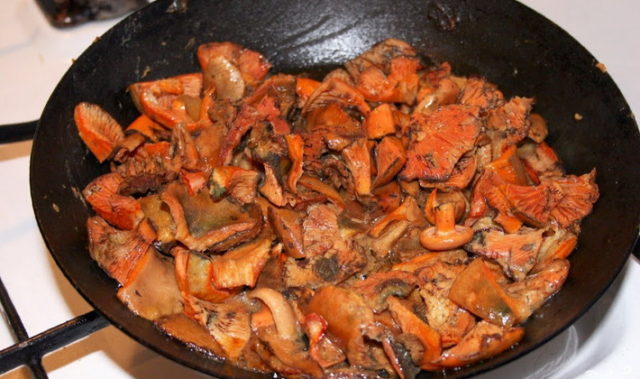 - O tratamento térmico não deve ser usado em demasia na fabricação de tampas de leite de açafrão. Cogumelos frescos congelados são fritos por cerca de 15-20 minutos. Para cogumelos cozidos, 8 a 10 minutos são suficientes.